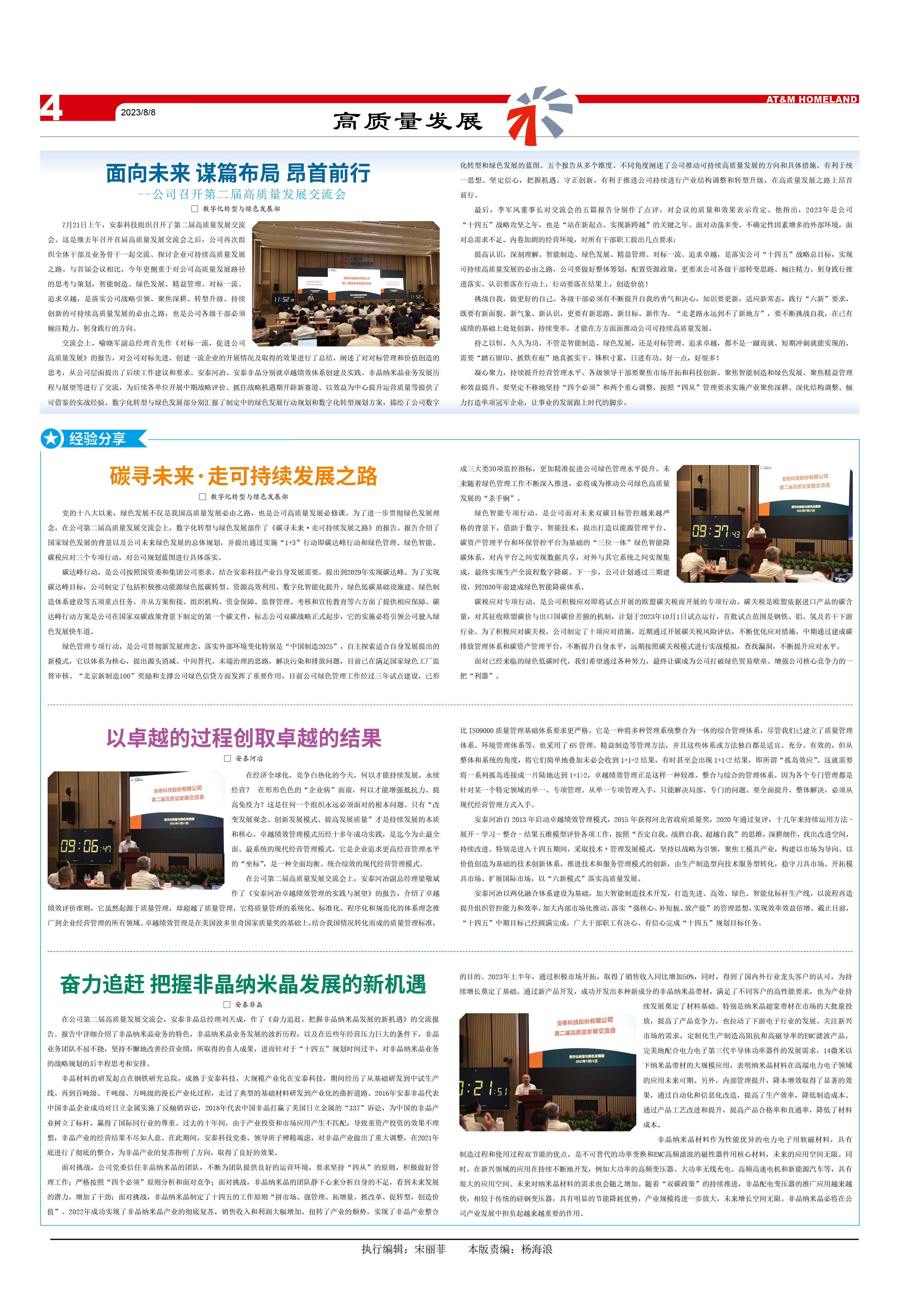 7月21日上午,安泰科技組織召開了第二屆高質量發展交流會。這是繼去年召開首屆高質量發展交流會之后,公司再次組織全體干部及業務骨干一起交流、探討企業可持續高質量發展之路。與首屆會議相比,今年更側重于對公司高質量發展路徑的思考與策劃,智能制造、綠色發展、精益管理、對標一流、追求卓越,是落實公司戰略引領、聚焦深耕、轉型升級、持續創新的可持續高質量發展的必由之路,也是公司各級干部必須傾注精力、躬身踐行的方向。