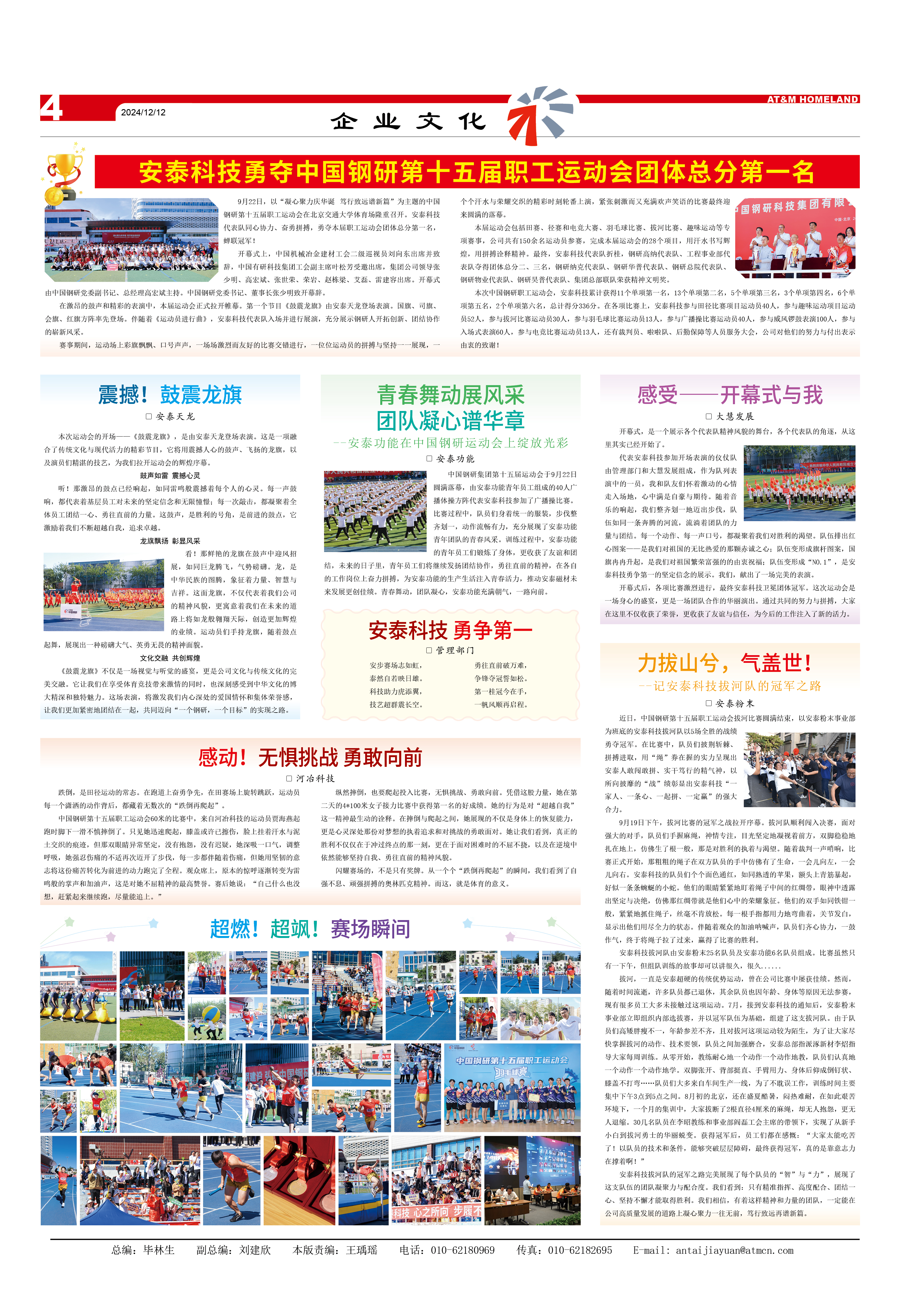 本次中國鋼研職工運(yùn)動(dòng)會(huì),安泰科技累計(jì)獲得11個(gè)單項(xiàng)第一名,13個(gè)單項(xiàng)第二名,5個(gè)單項(xiàng)第三名,3個(gè)單項(xiàng)第四名,6個(gè)單項(xiàng)第五名,2個(gè)單項(xiàng)第六名,總計(jì)得分336分。在各項(xiàng)比賽上,安泰科技參與田徑比賽項(xiàng)目運(yùn)動(dòng)員40人,參與趣味運(yùn)動(dòng)項(xiàng)目運(yùn)動(dòng)員52人,參與拔河比賽運(yùn)動(dòng)員30人,參與羽毛球比賽運(yùn)動(dòng)員13人,參與廣播操比賽運(yùn)動(dòng)員40人,參與威風(fēng)鑼鼓表演100人,參與入場(chǎng)式表演60人,參與電競(jìng)比賽運(yùn)動(dòng)員13人,還有裁判員、啦啦隊(duì)、后勤保障等人員服務(wù)大會(huì),公司對(duì)他們的努力與付出表示由衷的致謝!
